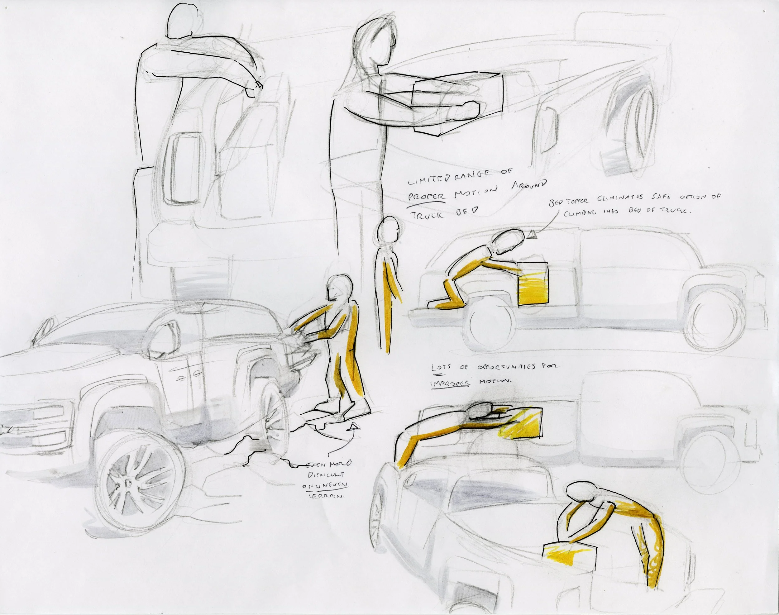 Most of the intuitive positions around a pickup truck are very bad ergonomically. Bed enclosures compound the problem by preventing the only really sound lifting movement (climbing directly into the bed.)